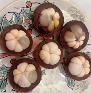 在山竹冷藏保鲜上采用格林春天的量子水性油墨印刷的包装袋包装、冷藏,同等条件冷藏,果肉保持原来颜色及味道,无应用格林春天量子水性油墨,同等条件冷藏,果肉变透明。